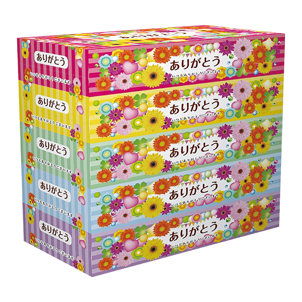 ありがとう ティッシュBOX 150W80個(1パック5個X16個)色指定不可