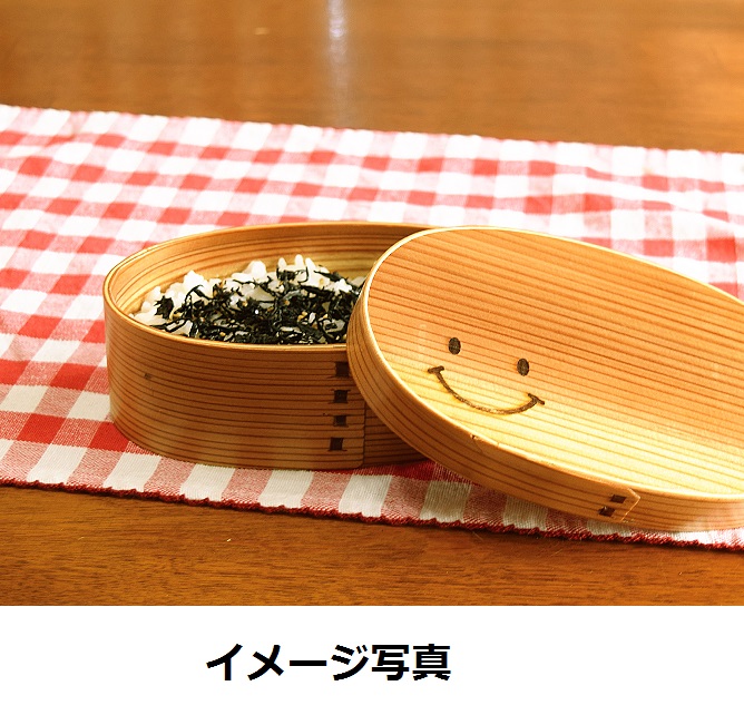 スマイル曲げわっぱ弁当箱仕切りバンド付サイズLフタ表面レーザー刻印